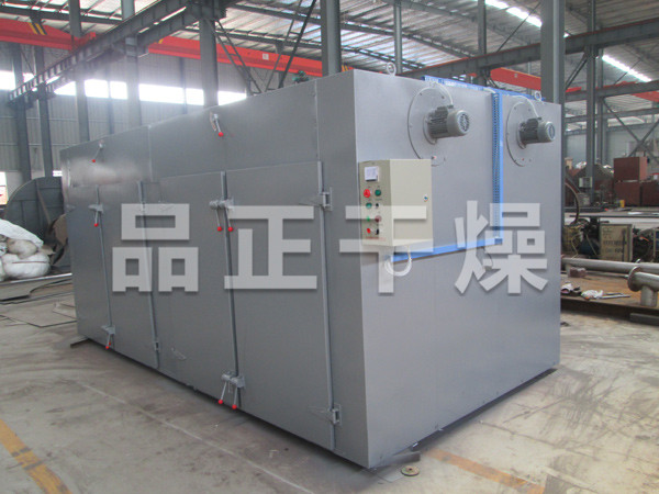 大部分熱風在箱內循環,熱效率高,節約能源。利用強制通風作用,箱內設有可調式分風板,物料干燥均勻,熱源可采用蒸汽、熱水、電、遠紅外,選擇廣泛。整機噪音小,運轉平衡。溫度自控,安裝維修方便。適用范圍廣,可干燥各種物料,是通用干燥設備。