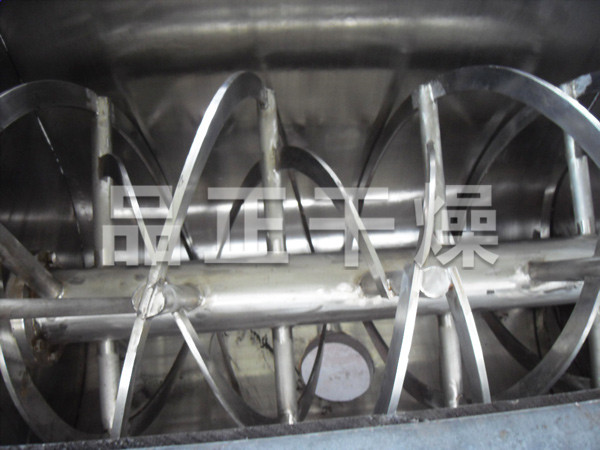 該機型由容器、螺旋攪拌葉片和傳動部件組成:螺旋葉片一般做成雙層或三層,外層螺旋將物料從兩側向中央匯集,內層螺旋將物料從中央兩側輸送,形成對流混合。
