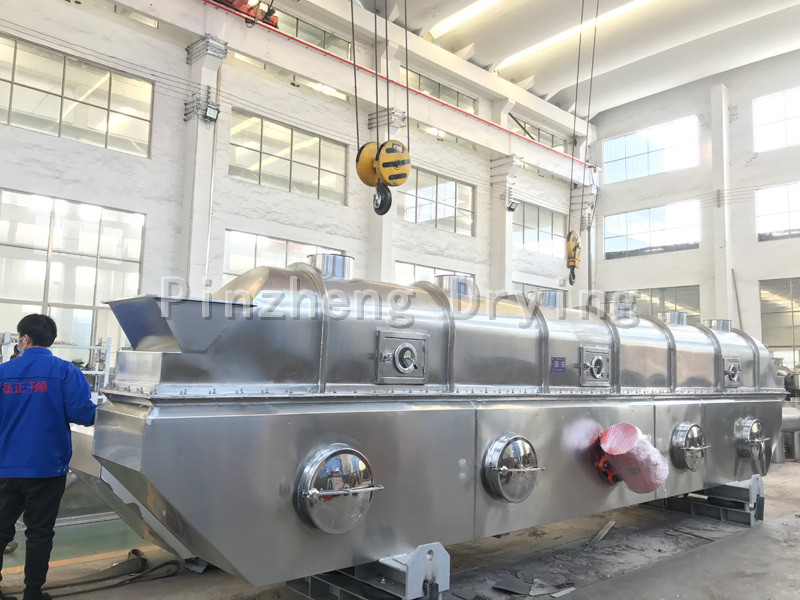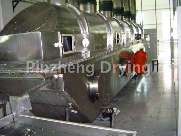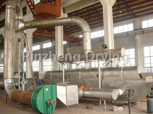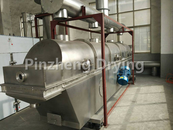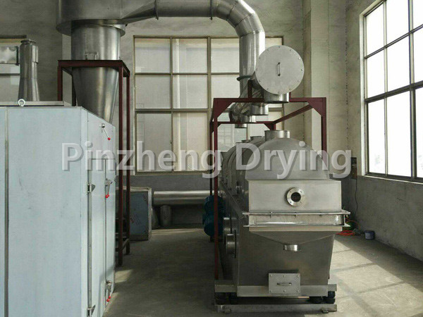 The material enters the machine from the feed inlet. Under the action of the vibration force, the material is thrown along the horizontal fluidized bed and moves forward continuously. After the hot air passes through the fluidized bed and exchanges heat with the wet material, the wet air is discharged by the exhaust 1:3 after the dust is removed by the cyclone separator, and the dry material is discharged by the exhaust inlet.