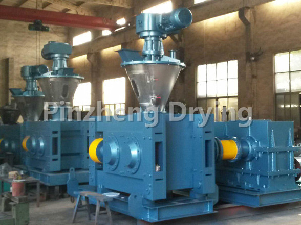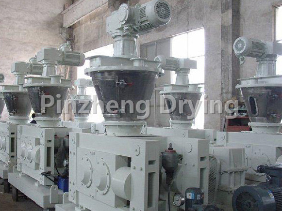 The forms of extrusion granulation can be divided into two types: roller-to-roll extrusion and roller-to-roll extrusion. The roller-to-roll extrusion is first pressed into large pieces, and then broken into particles. This device has large capacity, high particle strength, and low energy consumption. The roller-to-roll extrusion is widely used abroad. Wheel rolling is to directly make the roll surface into the shape of a cavity groove, and extrude it into a shaped particle at one time. When the strength of the product is low, it is sometimes necessary to add adhesive. It is suitable for making granular fertilizer such as organic fertilizer and compound fertilizer.