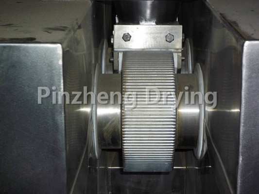The technological principle of twin-roll extrusion granulation is: dry materials are agglomerated into dense and hard bulk (cake) under pressure, which is called extrusion process; The cake material is broken and screened to become granular material, which is called granulation process. The role of extrusion is to squeeze out the air between the particles, and to make the particle spacing close enough to generate attraction such as van der Waals force, adsorption force, crystal bridge and embedded connection. The particle strength formed by extrusion granulation mainly depends on the force between molecules.
