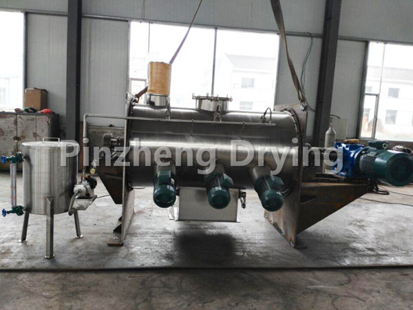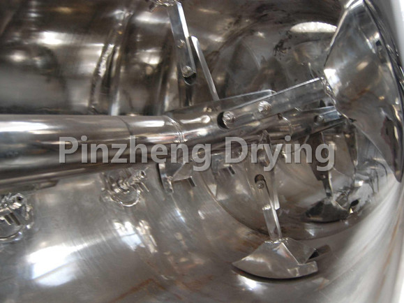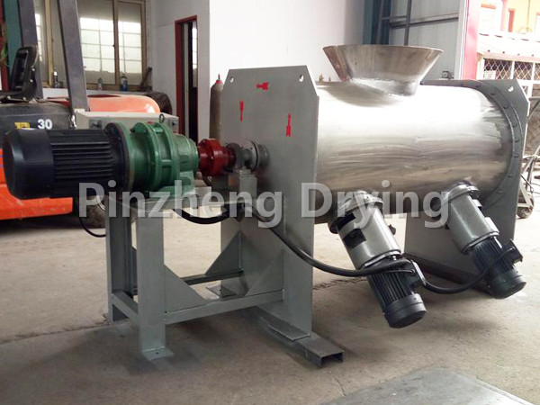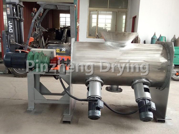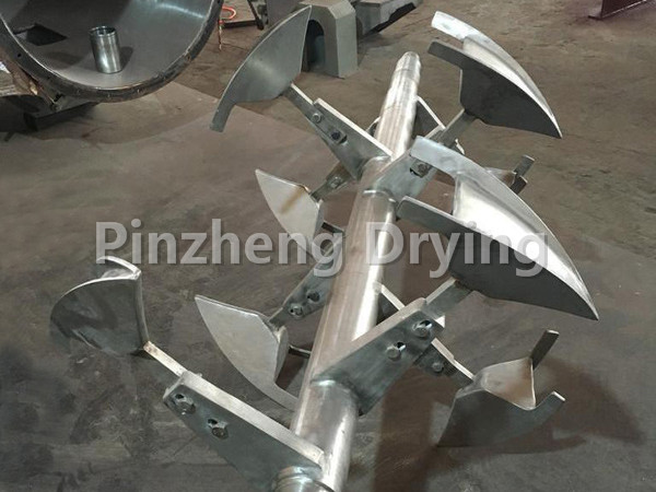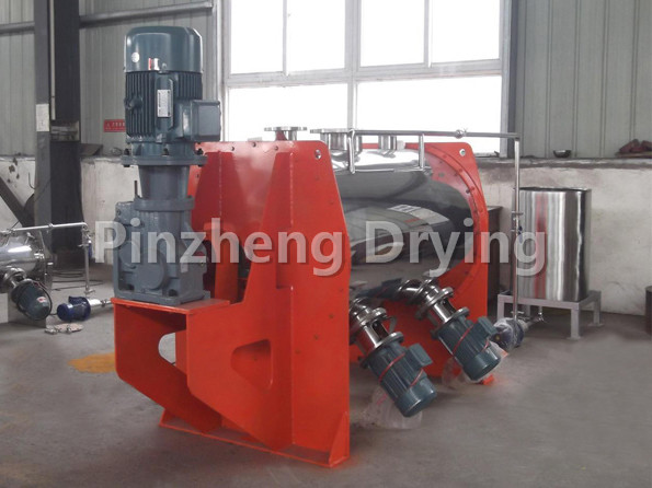 This model is composed of four parts: transmission mechanism, horizontal cylinder, plough and flying knife. The material is axially supported along the cylinder wall under the action of the plough. When the material flows through the flying knife, it is thrown by the flying knife with high speed, so as to achieve uniform mixing in a short time.