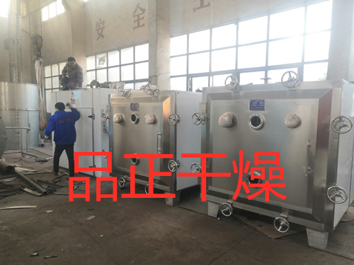 This time, a pharmaceutical factory ordered two square vacuum dryers and hot air circulation ovens. The so-called vacuum drying is to heat and dry the dried materials under vacuum conditions. It uses a vacuum pump to pump air and moisture to form a vacuum state in the working room and accelerate the drying rate. The characteristic of this machine is that the boiling point of the material solution is reduced under vacuum, which increases the heat transfer driving force of the evaporator. Therefore, the heat transfer area of the evaporator can be saved for a certain amount of heat transfer. The heat source of evaporation operation can be low pressure steam or waste heat steam (water or oil heating can be selected according to the user's special requirements, and the factory can specially design it for you). The heat loss of evaporator can be reduced. It is suitable for drying heat-sensitive materials that are easy to decompose, polymerize and deteriorate under high temperature. Disinfection can be carried out before drying, and no impurity will be mixed in the drying process. It is a static vacuum dryer, so the shape of the dried material will not be damaged.