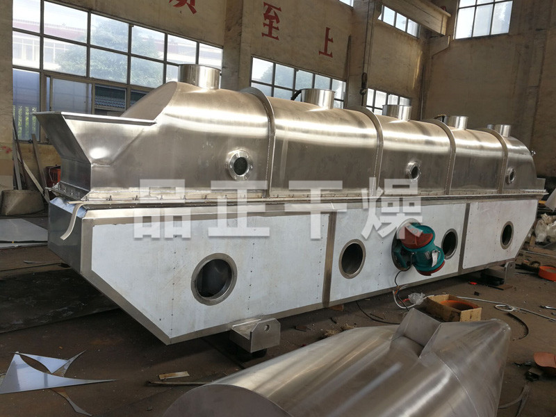 物料自進(jìn)料口進(jìn)入機內(nèi),在振動力作用下,物料沿水平方向拋擲向前連續(xù)運動,熱風(fēng)向上穿過流化床同濕物料換熱后,濕空氣經(jīng)旋風(fēng)分離器(或脈沖式布袋除塵器)除塵后由排風(fēng)排出,干燥物料由排料口排出,然后收集包裝。