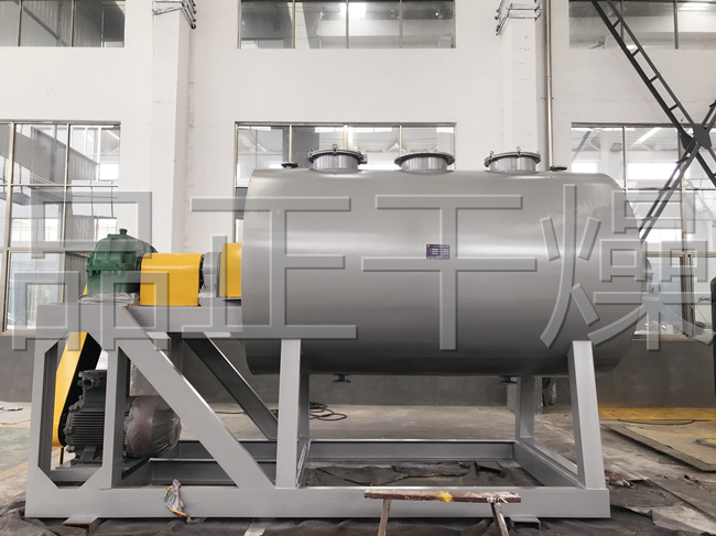 本機設置攪拌,從而可順利進行漿狀、膏狀、糊狀物料干燥。